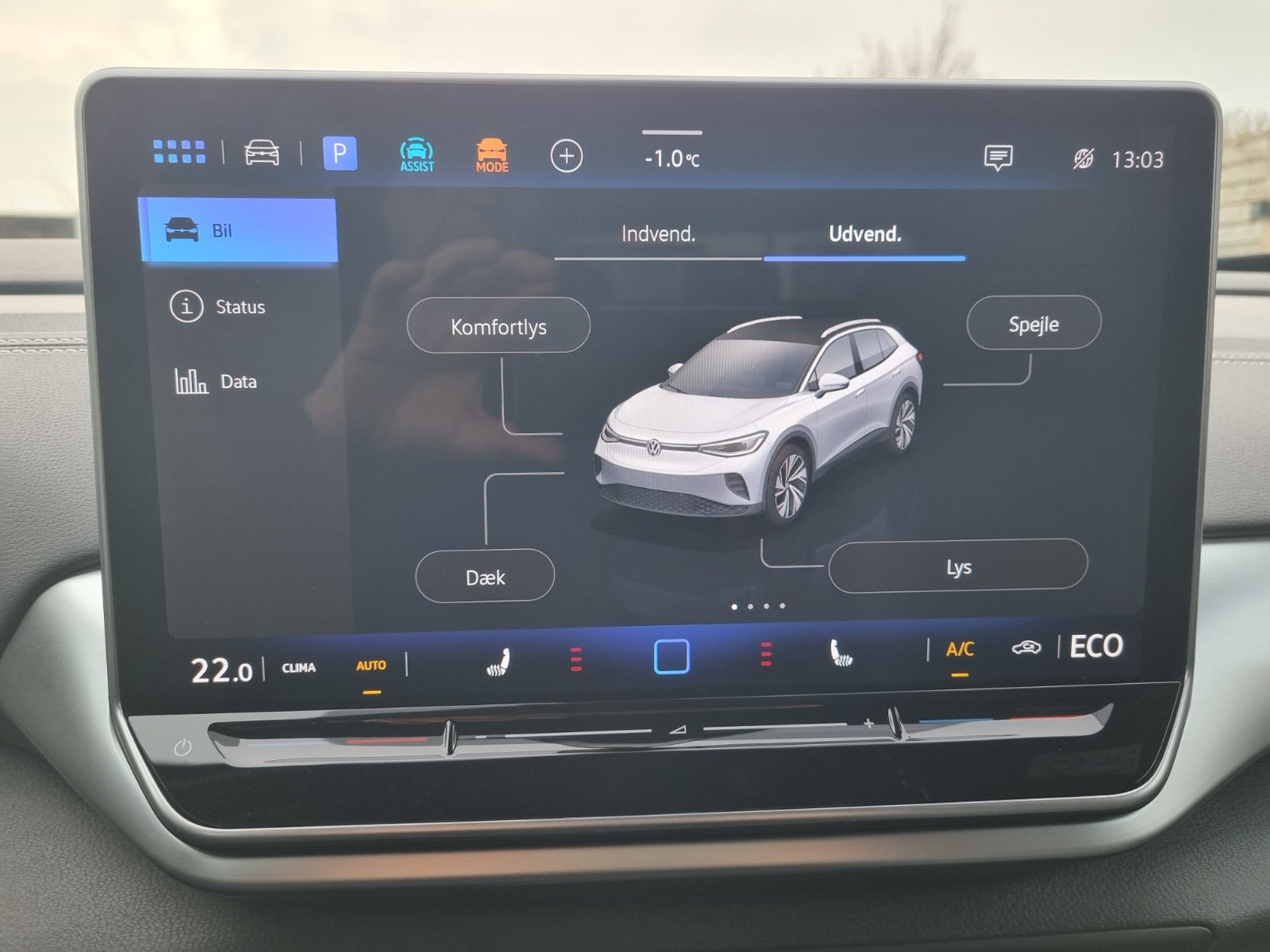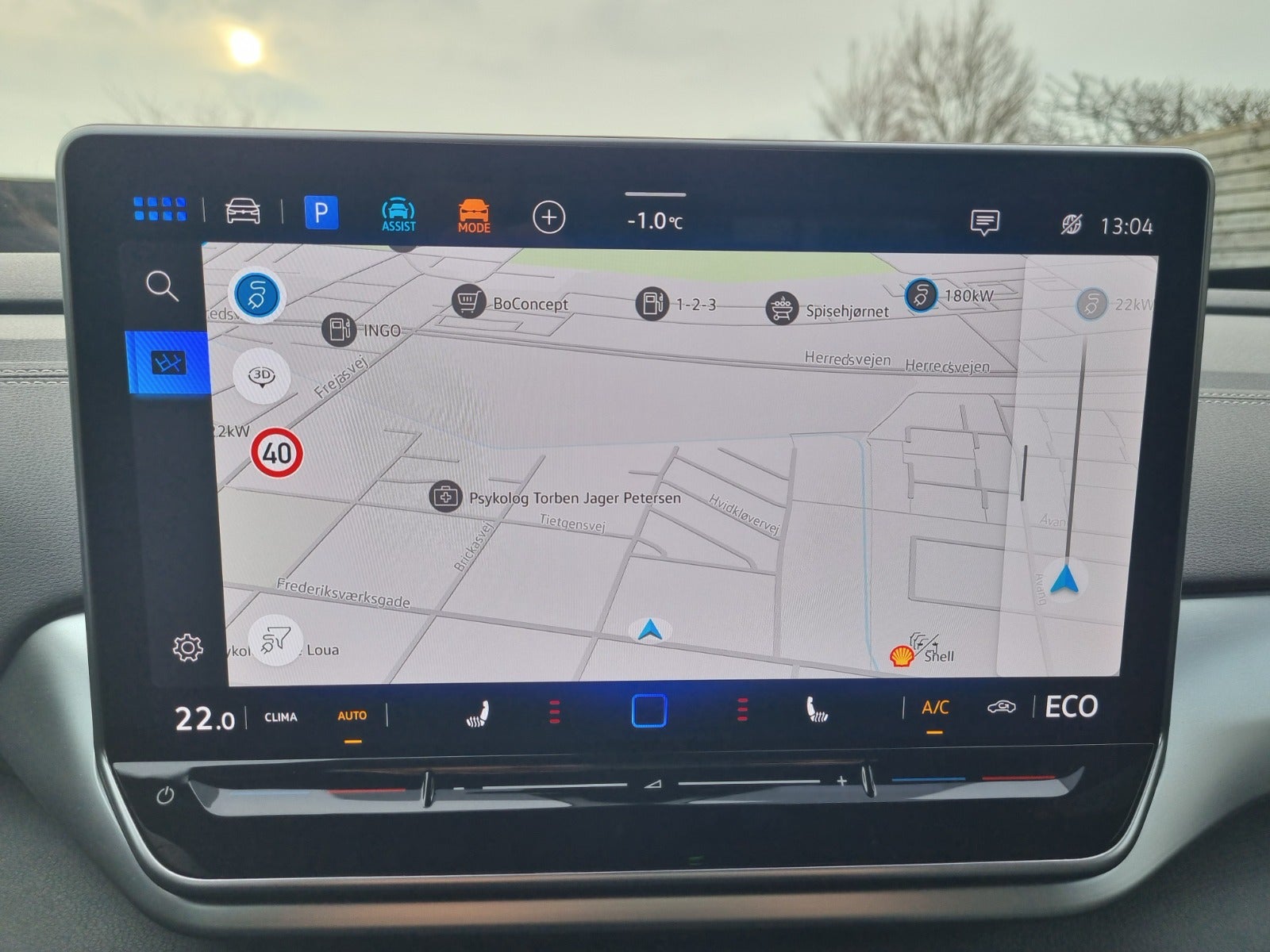 Ambientebelysning i 30 farver inkl. ID.Light, 3 zone klima, 4x el-ruder, Adaptiv Fartpilot som holder farten efter hastighed skiltene, navigation, fjernb. centrallås, bakkamera, parkeringssensor (for), parkeringssensor (bag), android auto, apple carplay, håndfrit til mobil, dab+ radio, varmetråd fri opvarmet forrude varme, elektrisk kabinevarmer, sædevarme, Kunstlæder multifunktionsrat med varm, Navigation, musikstreaming via bluetooth, trådløs mobilopladning, elektrisk parkeringsbremse, app integration, udv. temp. måler, aut. nedbl. bakspejl, Nøglefrit låse- og startsystem "Keyless Advanced" med safe funktion, kurvelys, led kørelys, fuld led forlygter, led baglygter, el-klapbare sidespejle med varme, 18" fælge, multifunktionsrat, kørecomputer, digitalt cockpit, læderrat, alcantara indtræk, højdejust. forsæder, elektrisk parkeringsbremse, automatisk nød assistent, stemmebetjening, vognbaneassistent, auto hold, esp, 7 airbags, antispin, automatisk nødbremsesystem, , automatisk nød assistent, automatisk lys, isofix, skiltegenkendelse, Dørtrins folie Extra, træthedsregistrering, intelligent hastighedsassistent, regnsensor, regnsensor, 2 USB-C indgange foran samt 2 USB-C lade stik i midterkonsol bag.