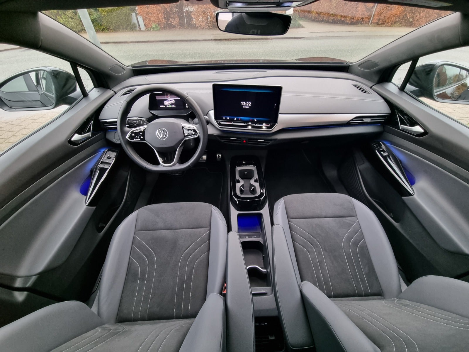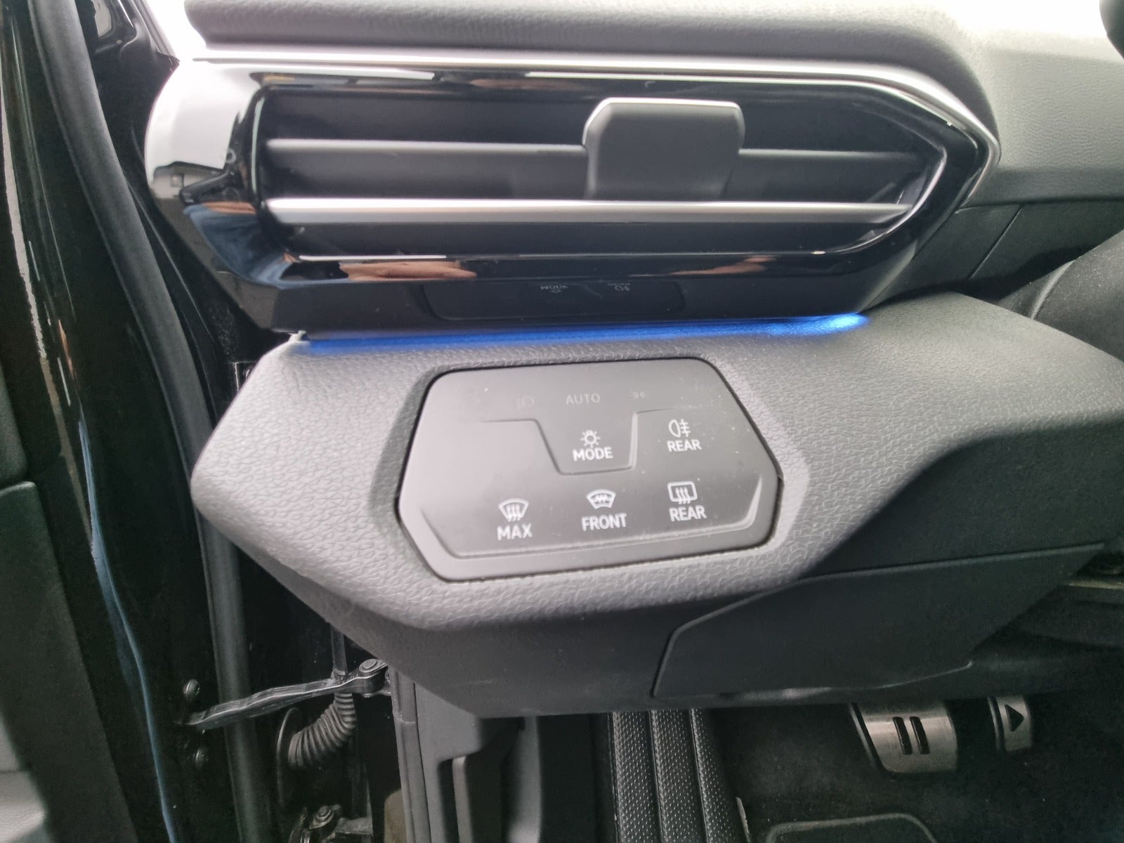 Ambientebelysning i 30 farver inkl. ID.Light, 3 zone klima, 4x el-ruder, Adaptiv Fartpilot som holder farten efter hastighed skiltene, fjernb. centrallås, bakkamera, parkeringssensor (for), parkeringssensor (bag), android auto, apple carplay, håndfrit til mobil, dab+ radio, varmetråd fri opvarmet forrude varme, elektrisk kabinevarmer, sædevarme, Kunstlæder multifunktionsrat med varm, Navigation, musikstreaming via bluetooth, trådløs mobilopladning, elektrisk parkeringsbremse, app integration, udv. temp. måler, aut. nedbl. bakspejl, Nøglefrit låse- og startsystem "Keyless Advanced" med safe funktion, kurvelys, led kørelys, fuld led forlygter, led baglygter, el-klapbare sidespejle med varme, 18" fælge, multifunktionsrat, kørecomputer, digitalt cockpit, læderrat, alcantara indtræk, højdejust. forsæder, elektrisk parkeringsbremse, automatisk nød assistent, stemmebetjening, vognbaneassistent, auto hold, esp, 7 airbags, antispin, automatisk nødbremsesystem, , automatisk nød assistent, automatisk lys, isofix, skiltegenkendelse, Dørtrins folie Extra, træthedsregistrering, regnsensor, 2 USB-C indgange foran samt 2 USB-C ladestik i midterkonsol bag.