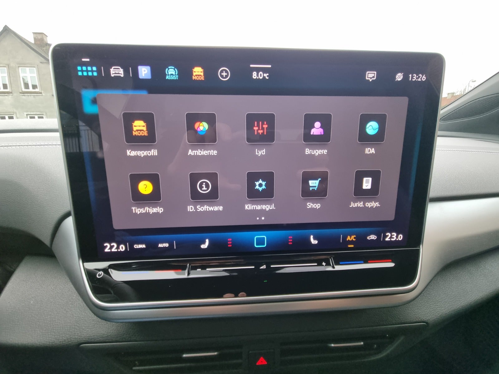 Ambientebelysning i 30 farver inkl. ID.Light, 3 zone klima, 4x el-ruder, Adaptiv Fartpilot som holder farten efter hastighed skiltene, navigation, fjernb. centrallås, bakkamera, parkeringssensor (for), parkeringssensor (bag), android auto, apple carplay, håndfrit til mobil, dab+ radio, varmetråd fri opvarmet forrude varme, elektrisk kabinevarmer, sædevarme, Kunstlæder multifunktionsrat med varm, Navigation, musikstreaming via bluetooth, trådløs mobilopladning, elektrisk parkeringsbremse, app integration, udv. temp. måler, aut. nedbl. bakspejl, Nøglefrit låse- og startsystem "Keyless Advanced" med safe funktion, kurvelys, led kørelys, fuld led forlygter, led baglygter, el-klapbare sidespejle med varme, 18" fælge, multifunktionsrat, kørecomputer, digitalt cockpit, læderrat, alcantara indtræk, højdejust. forsæder, elektrisk parkeringsbremse, automatisk nød assistent, stemmebetjening, vognbaneassistent, auto hold, esp, 7 airbags, antispin, automatisk nødbremsesystem, , automatisk nød assistent, automatisk lys, isofix, skiltegenkendelse, Dørtrins folie Extra, træthedsregistrering, regnsensor, 2 USB-C indgange foran samt 2 USB-C lade stik i midterkonsol bag.