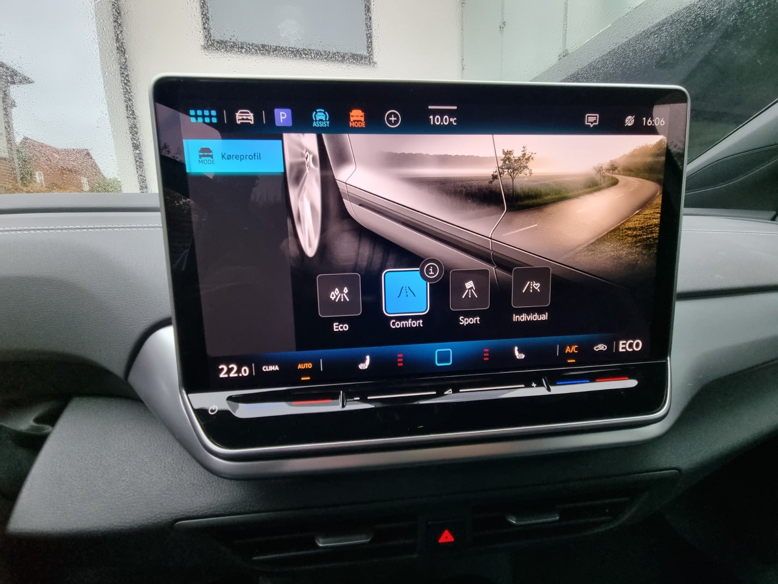 Dansk fra ny. Opgraderet model med den Store 12,9” Touchskærm, med forbedret software og teknologi, Udstyrsmodel Life 170 HK ✅Bemærk det er med 3 Faset opladning 11KW. ✅Varmepumpe ✅Fabriksgaranti til 17/7-2026 ✅ 5 års VW Garanti eller 150.000 km kan tilkøbes for 6000,- Kr.